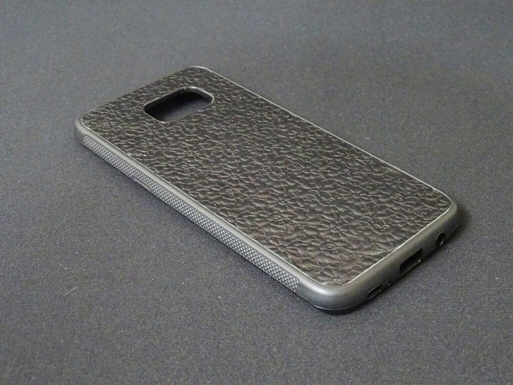 Samsung Galaxy S7 Edge - Jimmy Case - Genuine Kangaroo Leather Protective Rubber Flexible Phone Holder Case - Black Floral